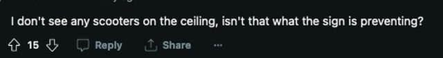 7. 我沒有看到天花板上有機車,難道那不是標誌所要阻止的嗎? 備註 留言蠻好笑的XD https://i.imgur.com/TlOBzz2.gif