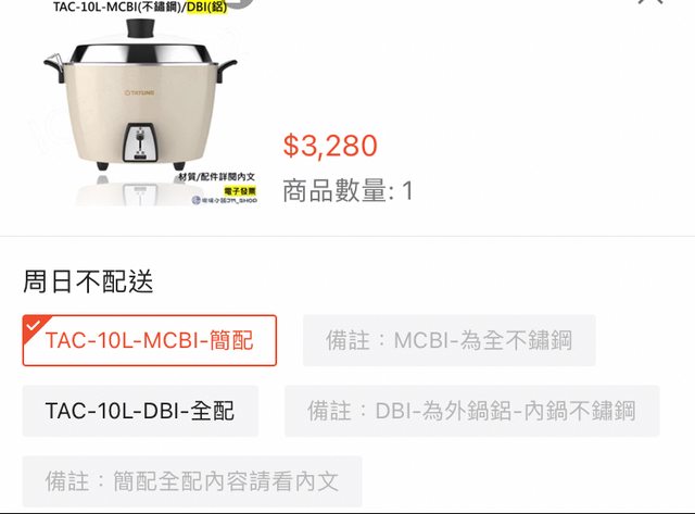 交易物品:大同10人份電鍋