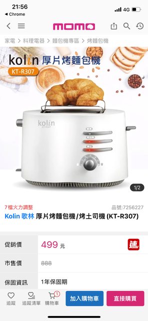 1. 全新未用歌林烤麵包機 售400 (momo現主時賣499)