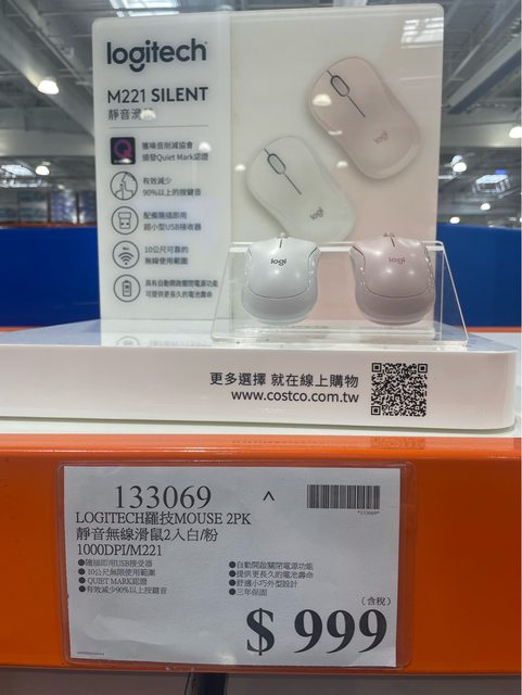 2.好市多 羅技靜音無線滑鼠 分售1個(白色)$500/個