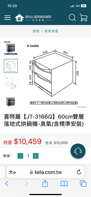 二手喜特麗烘碗機/1500元/因更換洗碗機故售出(目前還在服役中,預計下週拆機可取)