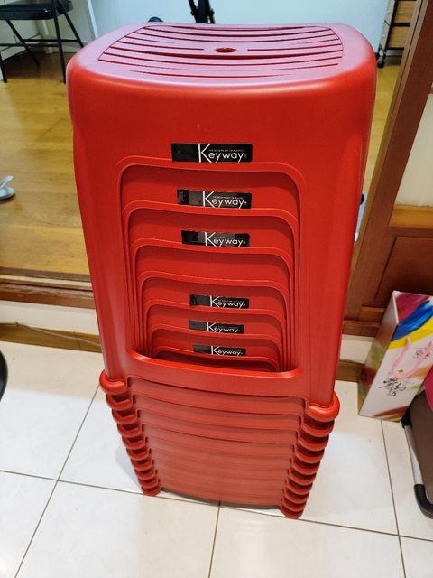 2. 紅色塑膠椅x10張:一共200元