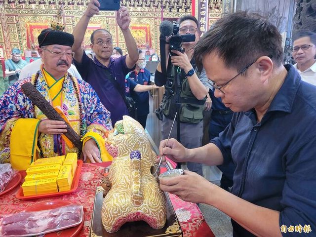 台南開基臨水夫人媽廟今天舉辦江虎婆(見圖)金尊入神安寶暨開光祈福儀式。(記者王