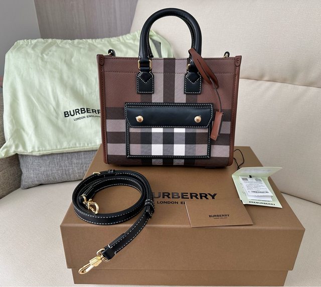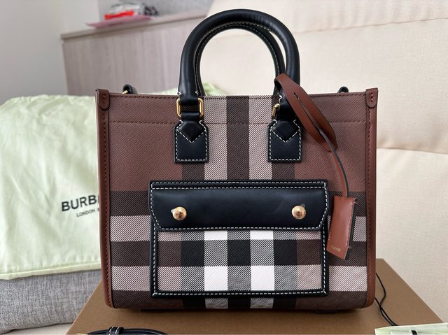 標題[交易] Burberry Freya真皮格紋托特包