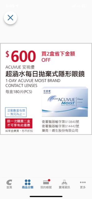 想徵求11/27-12/7好市多安視優隱形眼鏡特價檔期,有剛好台南的板友也是525度想一人