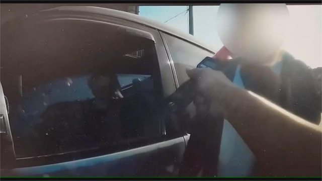 駕駛看到警察嚇了一跳,下車時手動了一下,疑似是把酒放