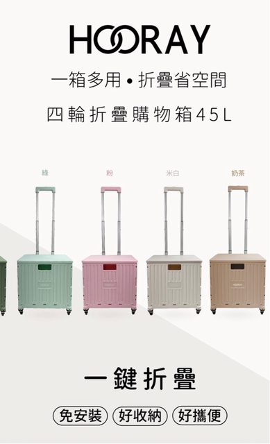 1.Hooray 45L 摺疊收納手拉車 ,全新 白/粉 各1 個。售一個$700(粉色已預訂)