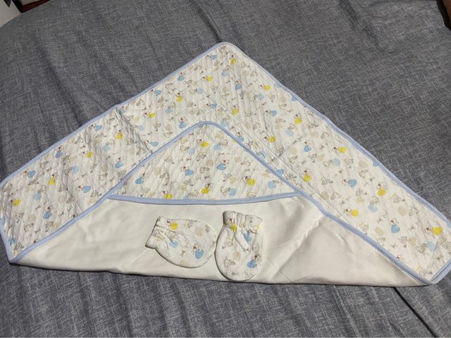 4、寶寶厚棉包巾手套組/300元/全新