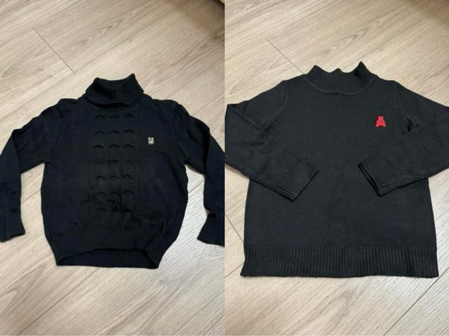 磨毛上衣#7、刷毛褲#90、黑色針織上衣#85、黑色針織薄毛衣#7、全新襪子2雙組