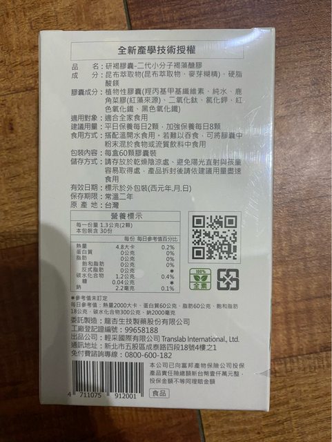 6. 研褐 膠囊二代小分子褐藻醣膠-60粒,2500元