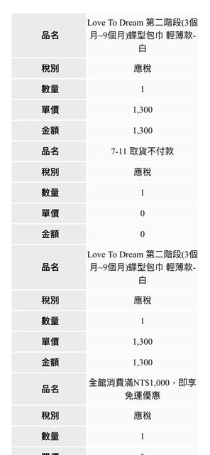 購入價1300/件 (發票明細如下)