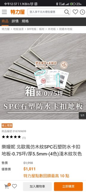 買了五盒,開了一盒鋪起來才發現地板是不平的,看起來平而已QQ
