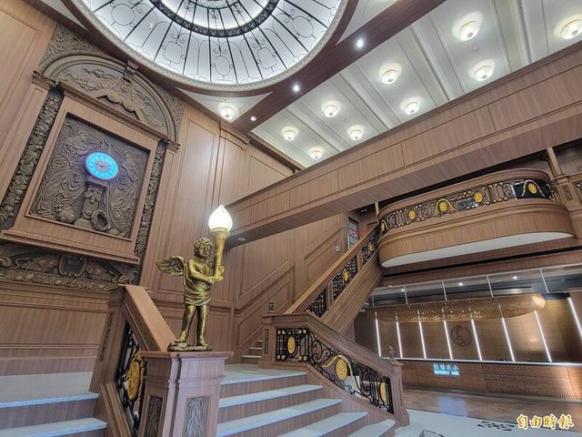 台南「安平航海城」以電影《鐵達尼號》大廳還原設計迎賓。(記者王姝琇攝)