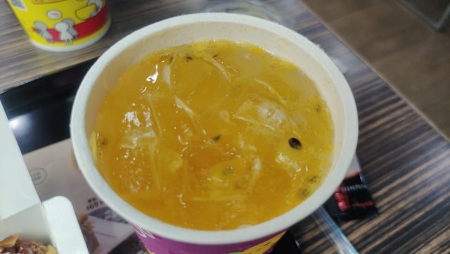 另外一款百香果氣泡飲,裡面是由七喜加上百香芒果原汁調配出