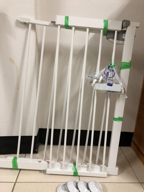 門欄(寬度75-84)上面有被小孩貼貼紙,還有一片可延長30公分、止滑保護墊(未使用過) 售500