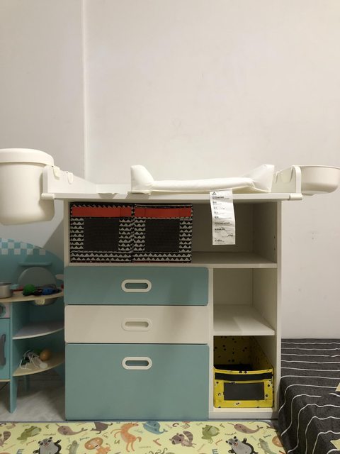 IKEA尿布台(含儲物籃、墊子、收納盒)有正常使用痕跡,檯面有髒汙 售4300
