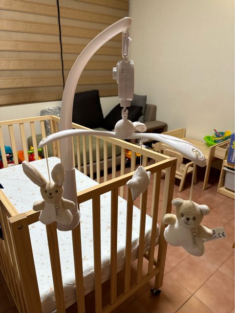 附贈床包x2、保潔墊x2、chicco床頭音樂鈴、ikea床邊收納袋