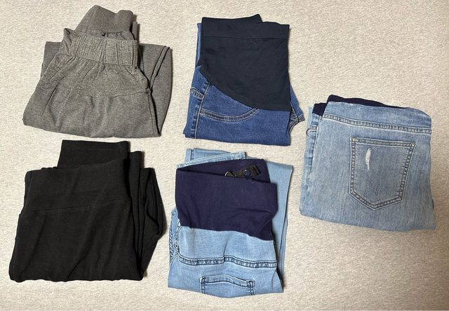 3. 贈送~約XL號孕婦褲5件 棉褲x2、牛仔長褲x2、牛仔短褲x1