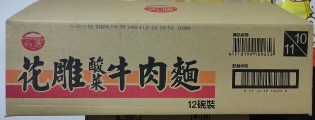 台酒花雕牛肉麵有2箱,一箱12碗500元,有效期限2024/4/15