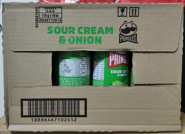 品客洋芋片洋蔥口味有2箱,一箱16罐700元,2箱1350元,有效期限2024/11/16