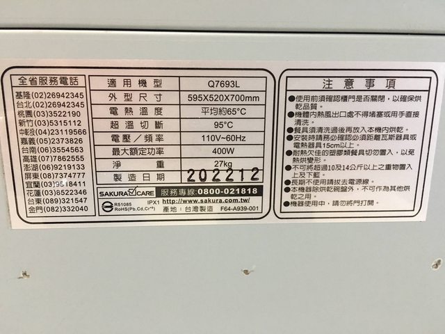 標題[交易] 出售全新櫻花牌Q7693L落地烘碗機
