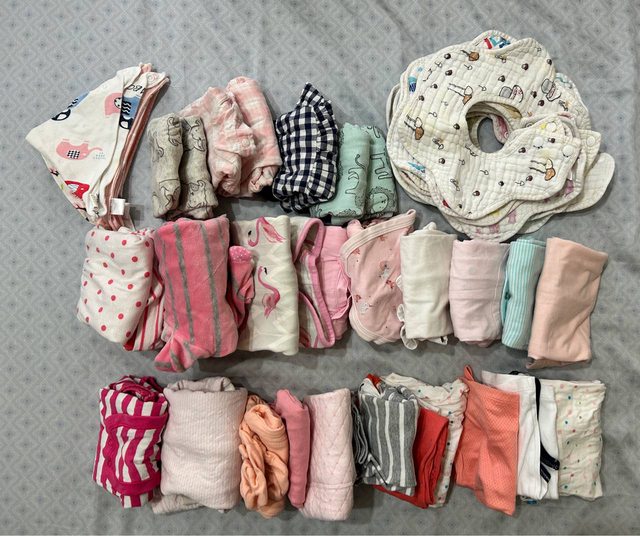 夏冬季皆有,尺寸大多在60-80,女嬰衣物居多