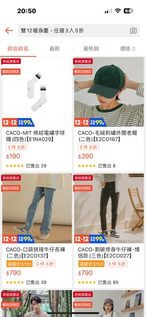 標題[交易] 湊團合購 CACO蝦皮3件5折