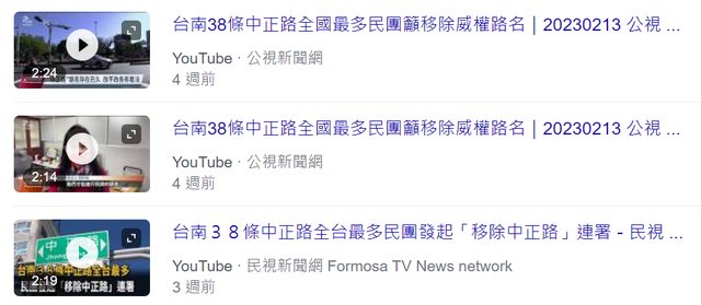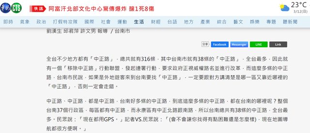 噓 searchroy: 道路改名是當地住戶的權力,成天看不順眼就要侵害他人 12/05 15:43