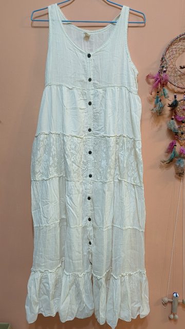 日牌飄逸棉長背心洋裝米色150