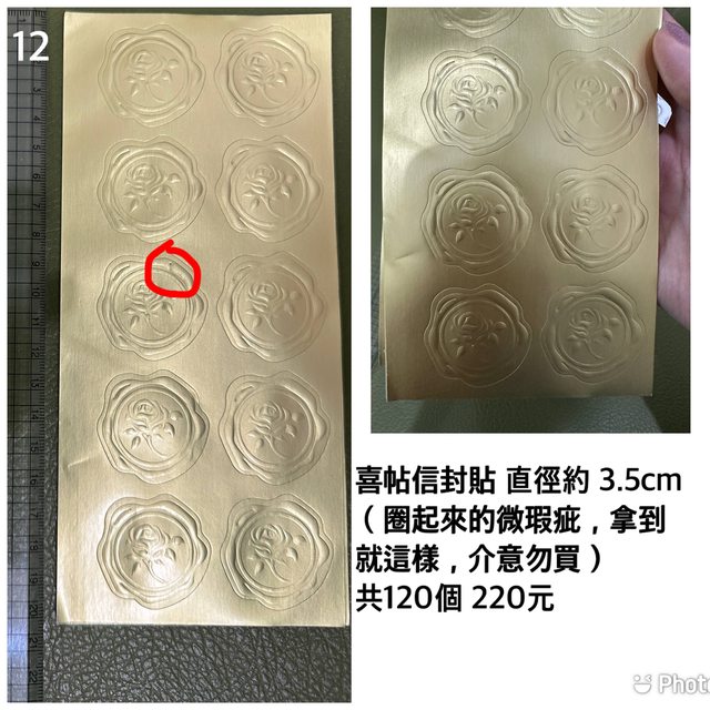 12. 喜帖信封貼 直徑約 3.5cm共120個