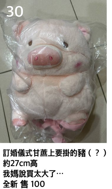 30. 訂婚儀式甘蔗上要掛的豬(?)約27cm高,我媽說買太大了。全新