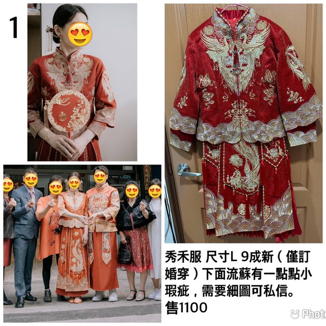 1. 秀禾服 尺寸L 9成新(僅訂婚穿)下面流蘇有一點點小瑕疵,需要細圖可私信。