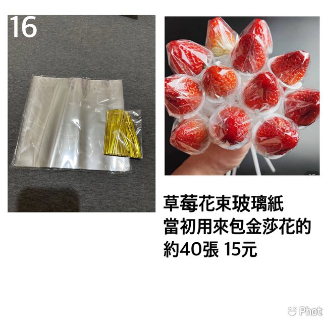 16. 草莓花束玻璃紙,當初用來包金莎花的