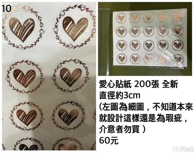 10. 愛心貼紙 200張 全新 直徑約3cm