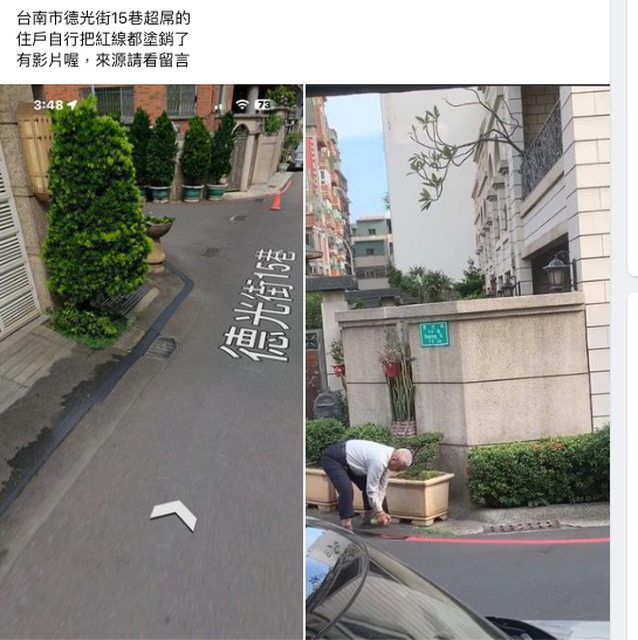 : 標題: [爆卦] 台南住戶自行把紅線塗銷 (德光街15巷)