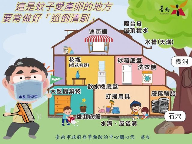 孳生源並呼籲民眾不可鬆懈防疫。(南市衛生局提供)