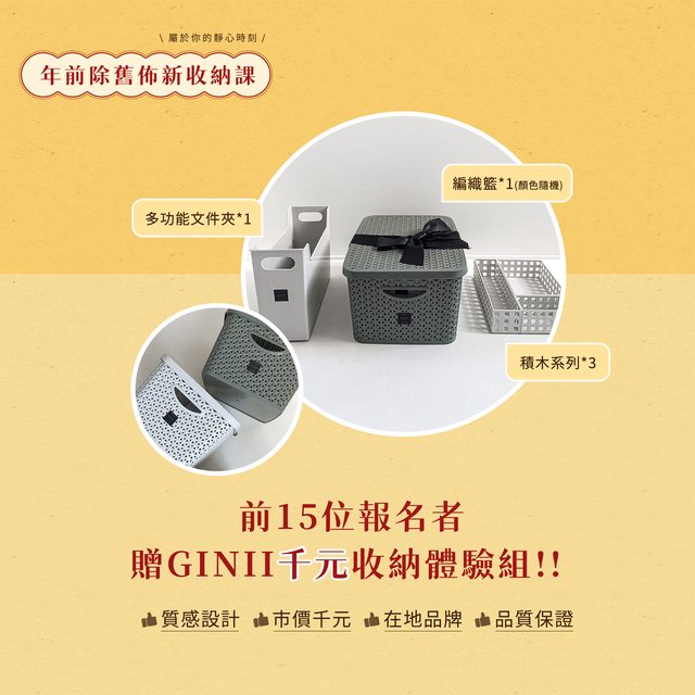 2.前15名報名再贈GINII的質感收納組(市價約$1,000)