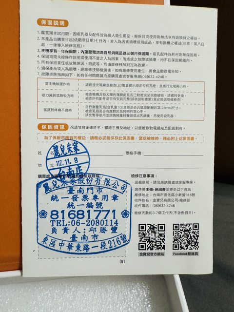用上不習慣只使用過兩次而已,且已消毒完成,保固一年到 2024.11.8 可以站內信看細照