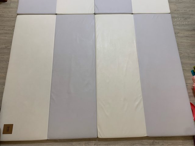 尺寸為160*120,灰白色,使用一年半,遊戲墊狀況維持得很好