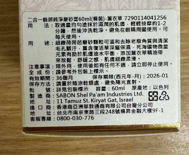 Sabon 二合一臉部純淨磨砂膏60ml(薰衣草)