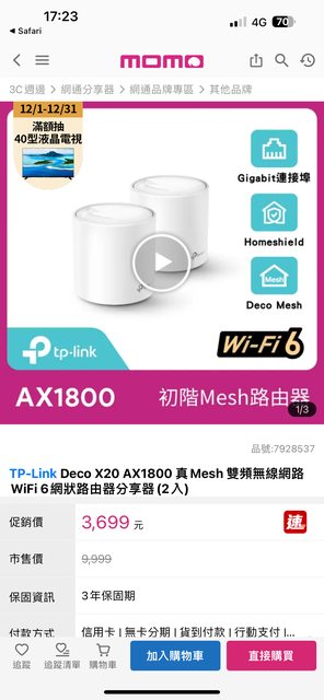 標題[交易] TP-Link Deco X20 AX1800 真Mesh 雙頻無F