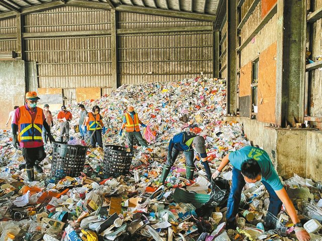 常見清潔隊堆滿資收物、須大量人力投入分類,