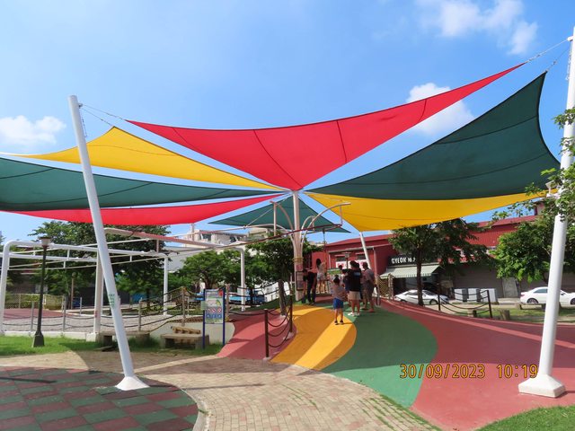 另現場也同時增設兩組大型彩色遮陽網