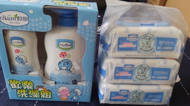 4.貝恩嬰兒泡泡歡樂洗澡組(洗髮200ml+沐浴1000ml)、貝恩濕紙巾3包,售400元