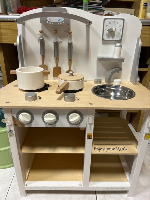 贈送new classic toys兒童廚房(少胡椒罐與烤箱門)、玩具食物、培樂多遊戲組(無黏土