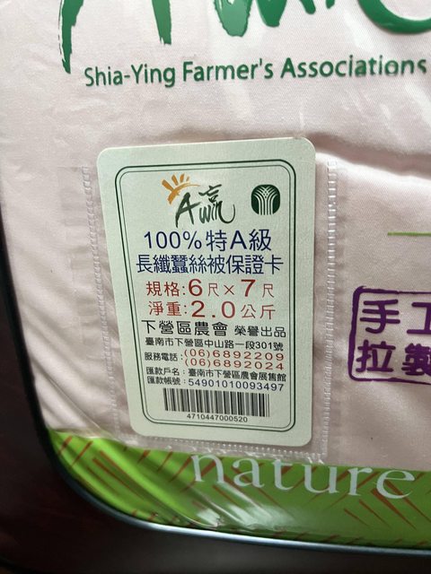 標題[交易] 下營農會100%蠶絲被 6x7尺