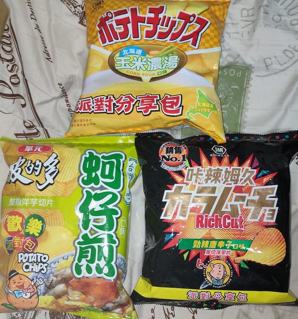 4. 湖池屋洋芋條(海苔鹽有10盒,卡辣姆久有3盒),一盒30元,有效期限2024/5/7