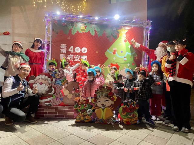 ,還有台江小紅妹跟著耶誕老人過節的打卡牆,有趣的中西
