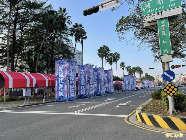 左營廣濟宮震天府於金華新路與大涼路虔設華壇陞座,氣勢磅礡!(記者王姝琇攝)