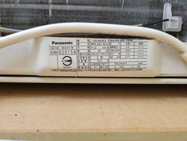 99年製國際牌(CW-A20SL2)窗型冷氣1台_已拆卸
